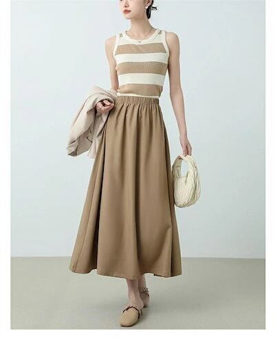 スカート ロング フレアスカート レディース ロングスカート ミモレ丈 ボトムス フレアスカート Aライン ハイウエスト 通勤 通学 ゆったり ウエストゴム カジュアル 大人可愛い オフィス キレイめ