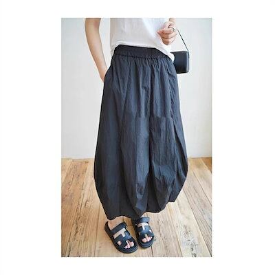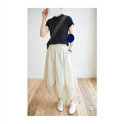 スカート 春夏 バルーンスカート レディース ロングスカート ミモレ丈 ボトムス コクーンスカート ウエストゴム 大きいサイズ ゆったり 体型カバー カジュアル 大人可愛い ひんやり ベーシック シ