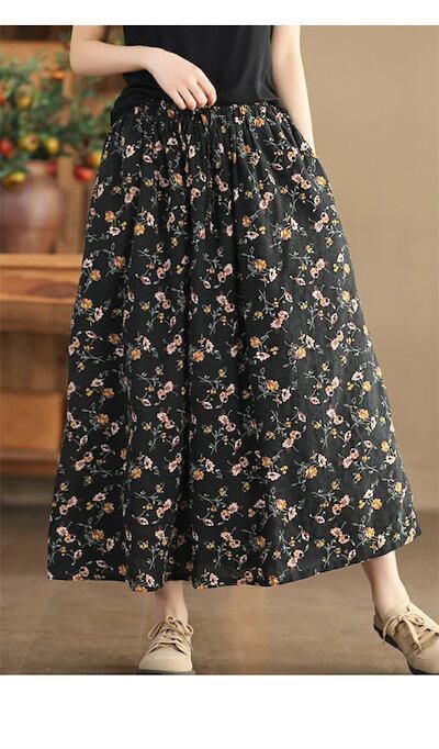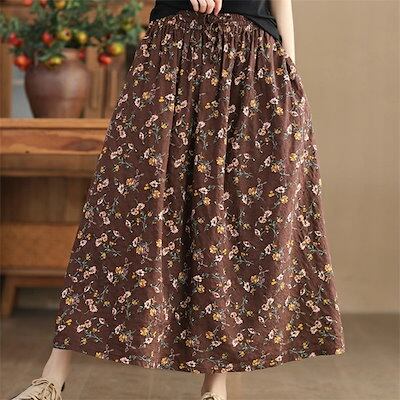 スカート 花柄 フレアスカート レディース 夏 ロングスカート 綿麻風スカート フレア ボトムス 大きいサイズ ゆったり ウエストゴム 大人可愛い カジュアル ナチュラル 着痩せ 体型カバー リゾート
