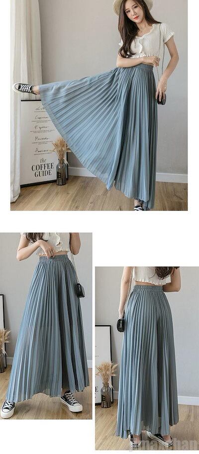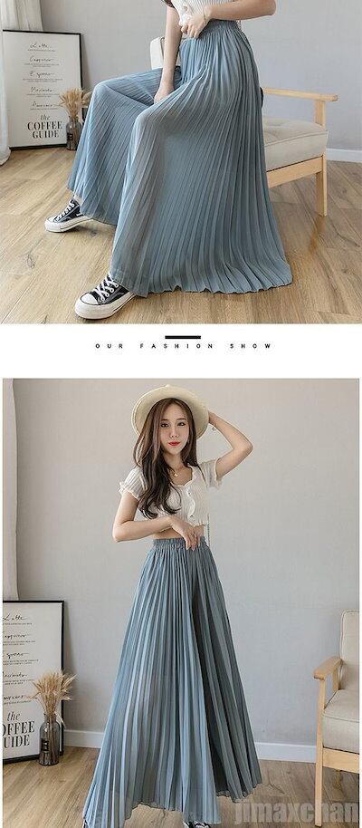 限定カラーレディース ロングパンツ ボトムス ワイドパンツ ウエストゴム シフォンパンツ ガウチョパンツ プリーツスカート マキシ丈 プリーツパンツ カジュアルパンツ パンツ お洒落