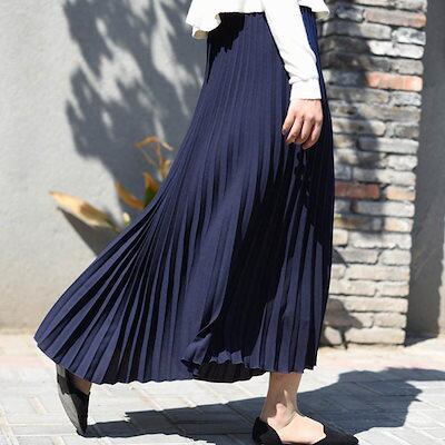 マキシ丈 プリーツ ウエストゴム フレアスカート プリーツスカート レディース ロングスカート マキシスカート ハイウエストスカート 大人