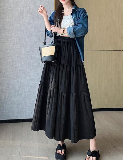ギャザースカート レディース シャーリング ロングスカート ミモレ丈スカート Aライン スカート ウエストゴム フレアスカート 切り替え 無地 きれいめ 春 夏 大きいサイズ S