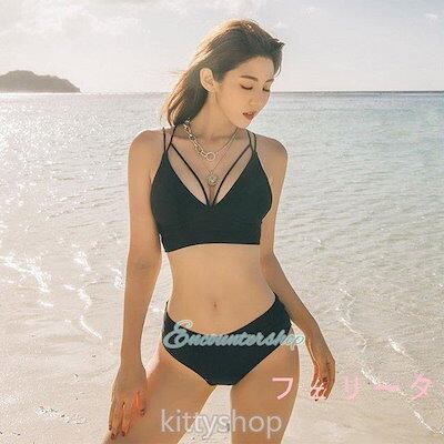 黒 ビキニ 水着 レディース ブラック ビキニ 2点セット 無地 スイムウェア ビキニ 水着 セパード水着 パット付き