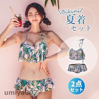 水着 レディース ビキニ 水着セット ヤシ柄 スイムウェア パンツ セクシー ホルターネック セパレート 韓国風 盛れる 温泉着 ビーチ 夏着 春コーデ