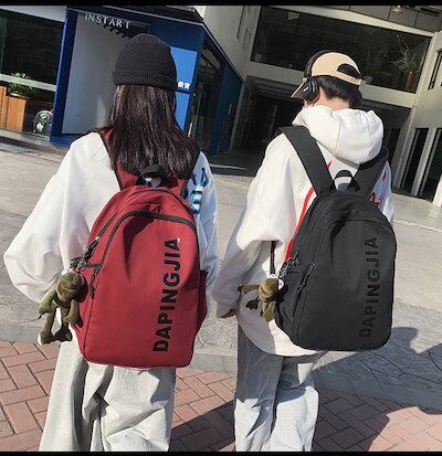 高品質保証4色 リュックサック バッグ レディース メンズ バックパック 鞄 かばん シンプル 無地 英文字 ロゴ 大容量 縦型 おしゃれ 大人可愛い 男女兼用 デイリーバッグ ポケットボーイッシュ