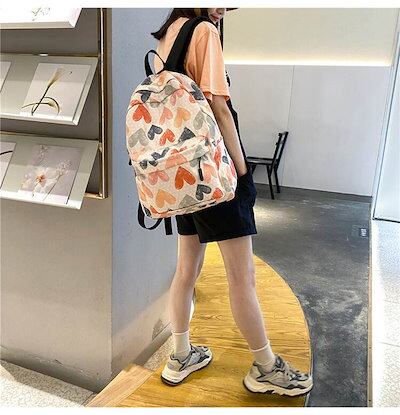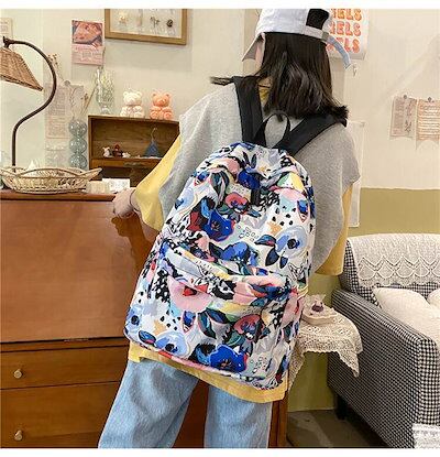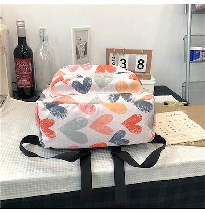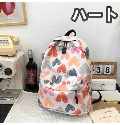 まとめ買い得4色 バッグ リュック バッグパック 鞄 bag ジッパー ポケット 大容量 総柄 派手 ペイント マルチカラー ペンキ 落書き トロピカル パイナップル ハート お花 フラワー カジュア