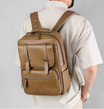 高品質 リュック メンズ ビジネス リュックサック レディース 大容量 撥水 PU レザー バックパック ポケット 多い 多収納 PC収納 PCパック a4 肩掛け 大人 学生 通学 通勤 カジュアル