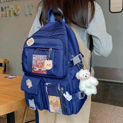 バックパック 缶バッジ 痛バ クリアバッグ ポケット ビニール 大容量 リュックサック リュック 軽量 普段使い デコ デコバッグ 痛バッグ ぬいぐるみ リュック バッグ 通勤 通学 かわいい 学生か