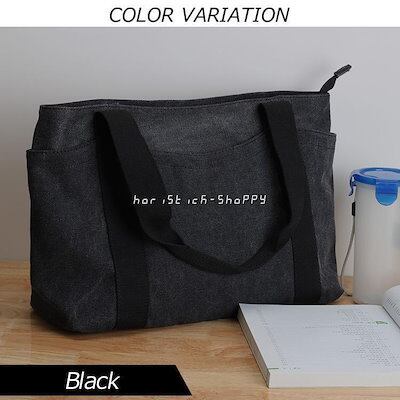 新製品 帆布 トートバッグ ファスナー付き レディース キャンバス シンプル 通勤 通学 女性 マザーズ ポケット多い 丈夫 大容量 多収納 保育園 ユーズド加工 ブラック