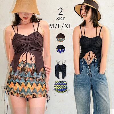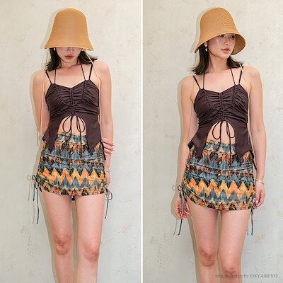OSYAREVO水着 レディース タンキニ 体型カバー スカート 一体型ショーツ セパレート 上下セット ウエスタン ボヘミアン カジュアル 20代 30代 オトナ女子 可愛い おしゃれ タンキニ水着 体型カバー水着
