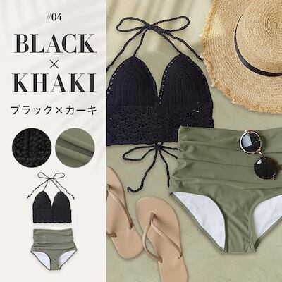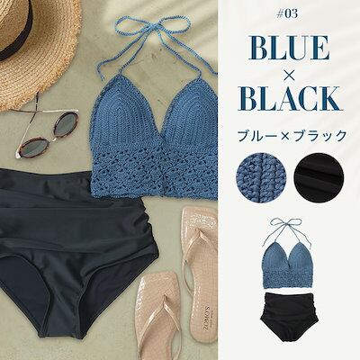 OSYAREVO水着レディース クロシェ編み 水着 ビキニ 上下セット セパレート 体型カバー ニット ハイウエストショーツ 20代 30代 40代 リゾート水着 クロシェビキニ 柄 サウナ プール 温泉 ビーチ ニ