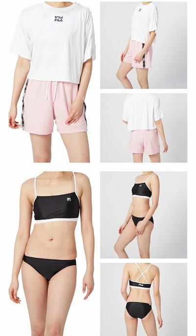 フィラ4点セット レディース 左袖ドット釦付きTシャツ ビキニ カジュアル水着 セット水着 体型カバー 上下セット 220706