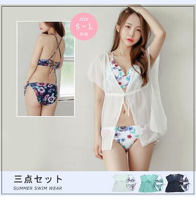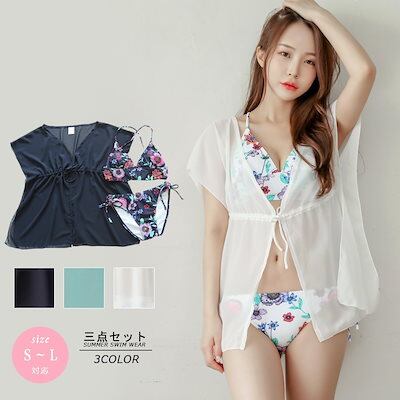 水着 シースルー 透け 体型カバー ビキニ 3点セット セパレート 露出控えめ 日焼け防止 UV対策 レディース セクシー 韓国 可愛い へそ出し 水陸両用 ミセス 20代 30代