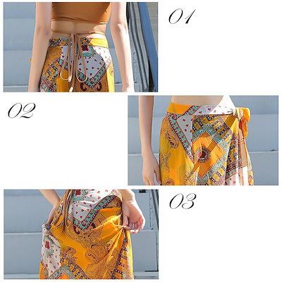 ビキニ パレオ付き3点セット水着 スイムウエア レディース ハイウエスト ショートパンツ リゾート レースアップ シンプル 体型カバー