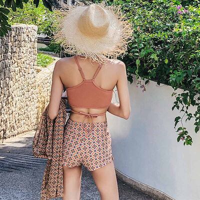 水着 レディース 夏 パレオ付き ビキニ タンキニ ポリエステル 体型カバー 3点セット