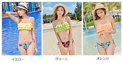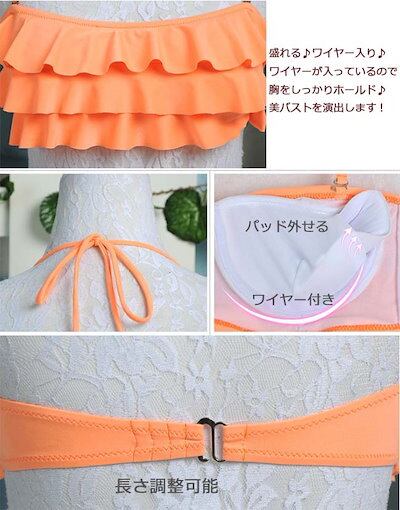 水着 レディース ワイヤービキニ フレア パッド取り外し可 小胸をカバー ホルターネック 2点セット