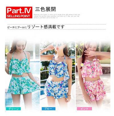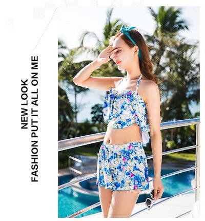 水着 レディース ビキニ 3点セット 体型カバー フリル ブラ ショートパンツ スカート セクシー 女性用 大人 女の子 ママ ワイヤー入り ホルターネック プール 海 ビーチ用 花柄 可愛い おし