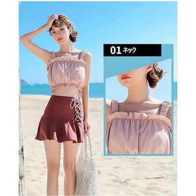 スカート オシャレ リボン ビキニ 学生 レディース セパレート スイムウェア 水着2点セット 可愛いスポーツ 体型カバー水着