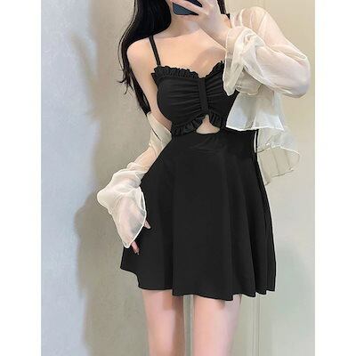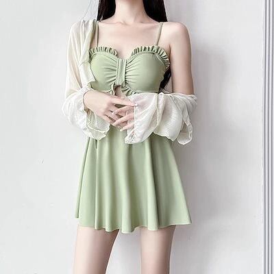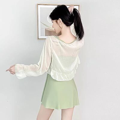 レディース水着2枚セット体型カバーUVかわいいワンピース水着ビキニ ラッシュガードヌーブラ Tシャツ2枚セット日焼け止め長袖コートワンピース控えめ温泉水着痩せ見