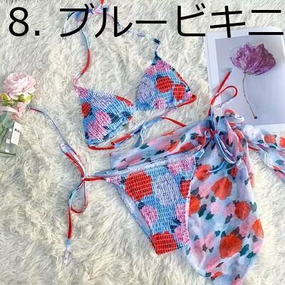 2024春夏新作 水着 レディース ビキニ 花柄 カラフル セクシー スカート 3点セット ヨーロッパ 米国 海辺 休日 レース ホルターネック 韓国 華やか おしゃれ かわいい