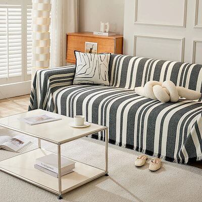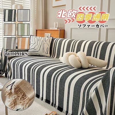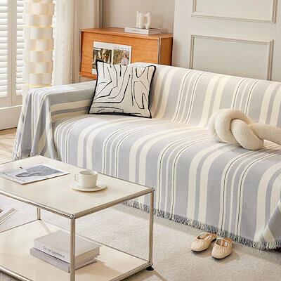 毛布・ブランケット・タオルケット オールシーズン シュニールソファカバーストライプ柄ふんわりソファカバーチェアカバーラグベッドカバーテーブルクロス々な用途に使えるマルチカバーマルチカバー 北欧 ソファ