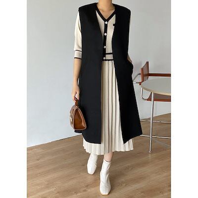 ジャンパー・ブルゾン 秋冬 ラシャ ベスト アウター ロング無地 ジャケット 百掛け 体型カバー ゆったり 韓国ファッション トップス レディース