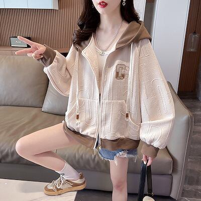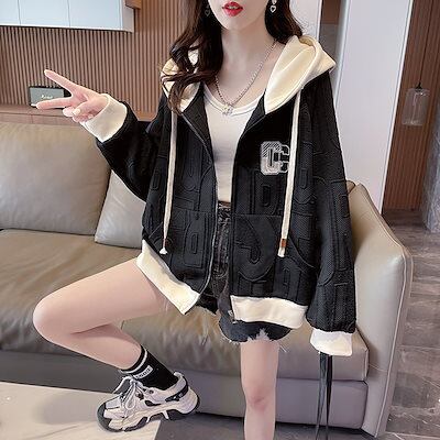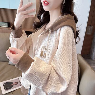 Tシャツ 韓国 秋服 新作 アウター カーディガン パーカー ジャケット 色切り替え 厚手 ショート 流行り 韓国ファッション
