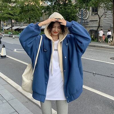 Tシャツ 韓国 秋服 パーカー スウェット フェイクレイヤード ジャケット厚手 切り替え ゆったり 大きいサイズ 着やせ 体型カバー