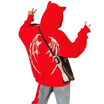 Tシャツ 韓国 秋服 パーカー スウェット 個性 ゆったり 大きいサイズ ?魔 暗黑系 ジャケット 着やせ