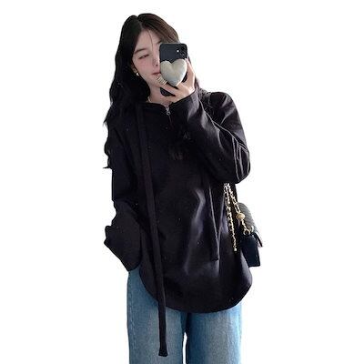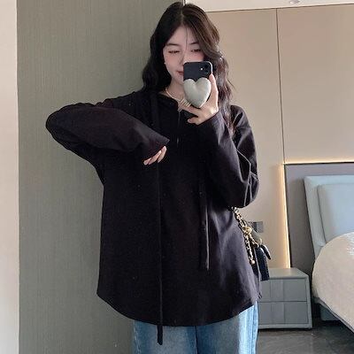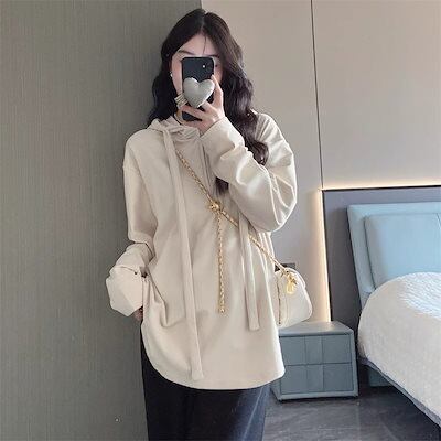 Tシャツ 韓国 秋服 パーカー スウェット 気質 ロング 綿麻 インナー 大きいサイズ ゆったり 着やせ レディース トップス 通勤 体型カバー