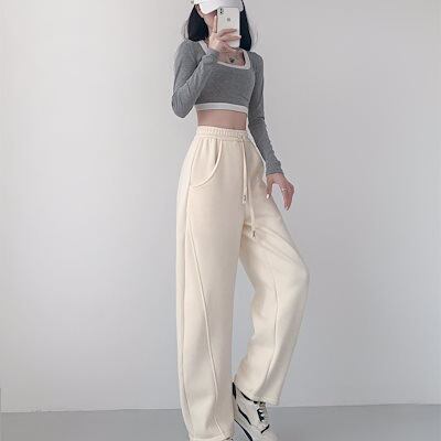 脚長効果!スキニーパンツ 秋 新作 ストレート デザイン 裏起毛 ワイドパンツ ウォーム お肌に優しい 快適 韓国ファッション 大きいサイズ カジュアル 運動 ハイウエスト 伸縮性のあるウエスト