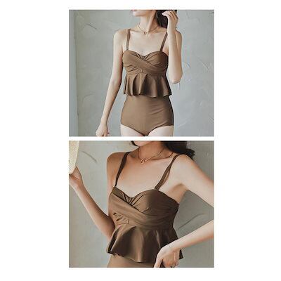 水着 レディース ビキニ フリル ワンショルダー ハイウエスト 2点セット ビキニセット ビーチ 女性用 ママ セクシー セパレート 温泉着