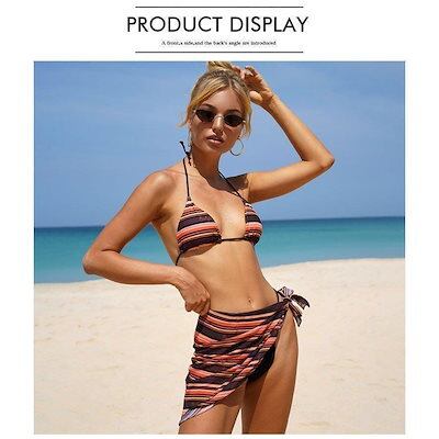 水着レディースビキニ水着3点セットスイムウェアスイミングストライプ女性用水着ビーチ海