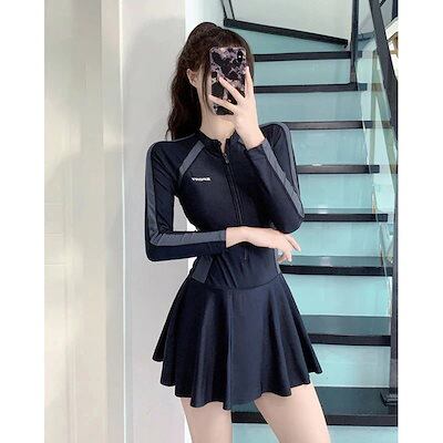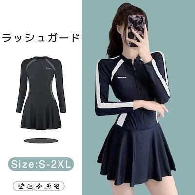 レディース水着 上下セット水着 2タイプ 5サイズ 女性ラッシュガード 長袖 ミニスカートラッシュガード水着 プール 海 水遊び 着や毛防止水着