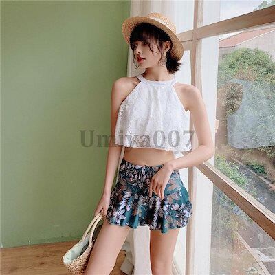 水着 レディース 体型カバー 2点セット ビキニ 上下セット パッド付き 小胸 盛れる 温泉 プール 海 夏 ママ水着 UVカット 紫外線対策 海水浴