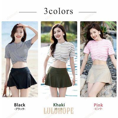 水着 レディース トップス スカート 2点セット 体型カバー 半袖 セパレート 可愛い 大人 洋服みたい ボーダー