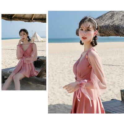 水着 レディース 長袖 ワンピース 体型カバー おしゃれ 可愛い セクシー 透け シースルー 袖 取り外し可能