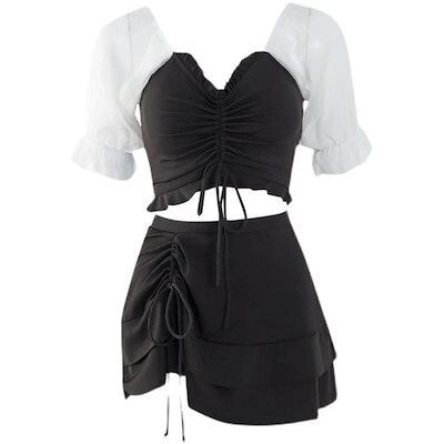 24 ビーチツアー パッド付き水着 運動 レース 着痩せ おしゃれ ワイヤー オールインワン 韓国 水着 レディース スイムウェア セットアップ オールインワン