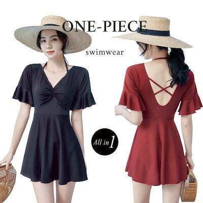 水着 レディース ワンピース フリル オトナ女子 水着 体型カバー ワンピース オトナ女子 水着 ショーツ 露出控えめ 太もも お腹 カバーアップ ノンワイヤー 盛れる おしゃれ 女性 かわいい