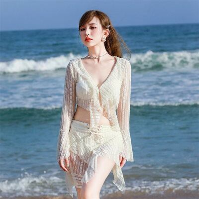 水着 おしゃれ レディース水着 セパレート ブラウス ビキニ 3点セット 体型カバー スカート 可愛い UVカット セクシー 黒 白 大人水着 新作 水着 二の腕 水着 ビキニ タンキニ ワイヤレス
