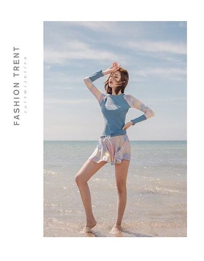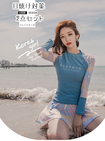 水着 セットアップ レディース 日焼け対策 保守 お腹カバー 長袖 体型カバー レディース 学生 女性 スカート パンツ セパレート 韓国 ファション かわいい おしゃれ ピンク ブルー ネイビー 水