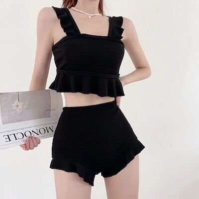 25 レディース水着 おしゃれ 人気発 ハイウエスト ビキニ リゾート 温泉水着 体型カバー 2点セット