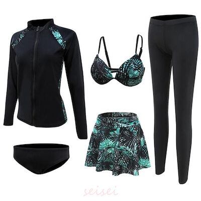 高評価,水着 レディース 体型カバー ラッシュガード レディース 5点セット 20代 30代 40代 50代 フィットネス水着 セパレート かわいい おしゃれ ラツシュガード