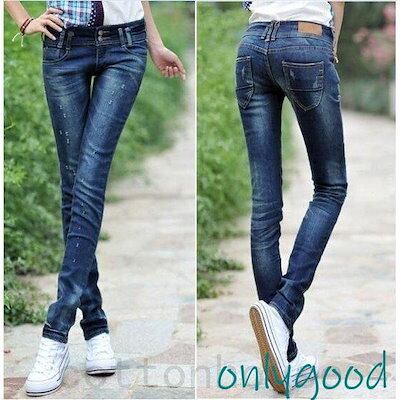 スキニーパンツ レディース デニム ストレッチ ジーンズ ジーパン ダメージ加工 美脚 ローライズ レギパン デニムスキニー 着痩せ カジュアル ロング丈