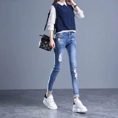 レディースパンツ美脚デニムパンツスキニーズボン極伸び美尻美脚スキニーデニムパンツナインポイントペンシルハイウエストスキニージーンズサロペット着痩せ春秋新作韓国版は薄手のストレッチスリムパンツ
