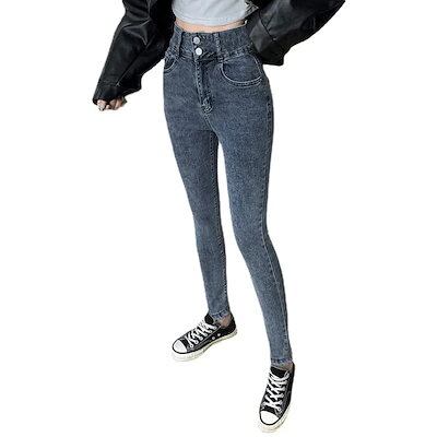 ストレッチ ジーンズ レディース 春 夏 オールマッチ 着痩せ 韓系 体型カバーストレート ドローストリングパンツ ジーンズ