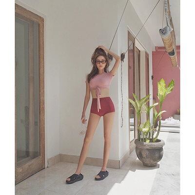 ビキニ水着レディース 夏 ビキニ2点セット水着 体型カバー 韓国風 ボリューム 半袖水着 小胸バンドゥビキニ 水着 セパレート 40代 スイムウェア 温泉 ママ水着