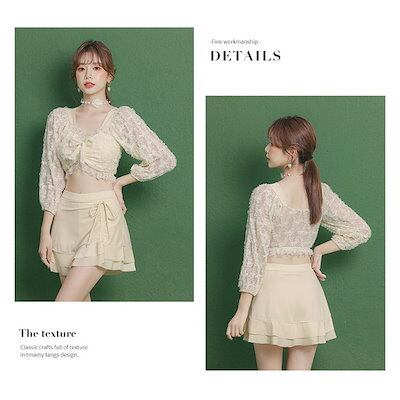 2024 夏 水着 レディース 2点セット 夏 小バンドゥ 水着セット 大きいサイズ リゾート パッド付き 韓国風