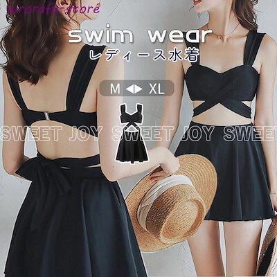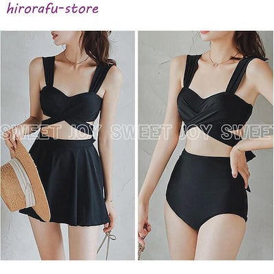 水着 レディース ビキニ バンドゥフリル ブラックリボンビーチウェア スカートパッド付き ミセス ファッションおしゃれ バストアップ スイムウェアスイミング
