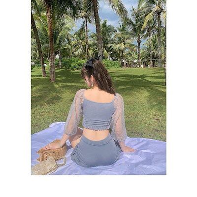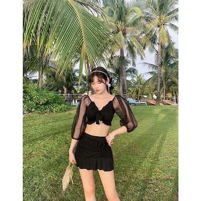 新作 水着 レディース 2点セット 小胸 バンドゥ 水着セット ビキニ パレオ 大きいサイズ リゾート パッド付き 韓国風 体型カバー 日焼け防止 代 30代 40代 50代
